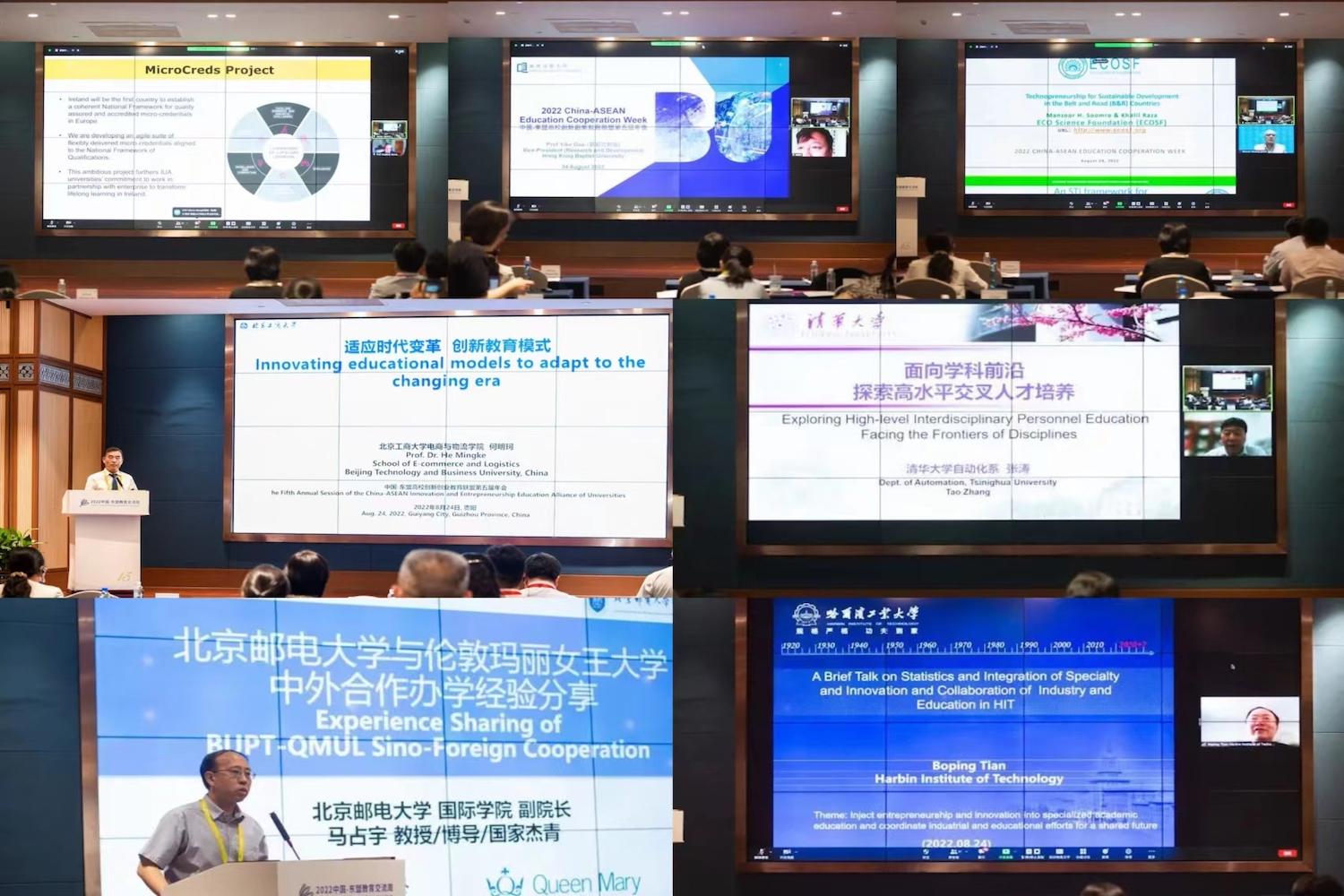 在主旨发言环节,来自马来西亚拉曼理工大学校长李仕伟(Lee Sze Wei)、重庆大学本科生院院长李正良、爱尔兰考克大学副校长史蒂芬·伯恩(Stephen Byrne)、清华大学信息科学技术学院副院长张涛、贵州理工学院校长潘良明、香港浸会大学副校长郭毅可、北京邮电大学国际学院副院长马占宇、泰国北清迈大学副校长蔡萍萍(Chutima Chavasint)、哈尔滨工业大学教授田波平、经济合作组织科学基金会主席曼祖尔·候赛因(Manzoor Hussain Soomro)、我校电商与物流学院教授何明珂围绕大会主题,就如何推进专创融合人才培养,推进中国及东盟高校在产教协同、培养创新创业人才方面所采取的实施路径及取得的成功经验进行了交流。