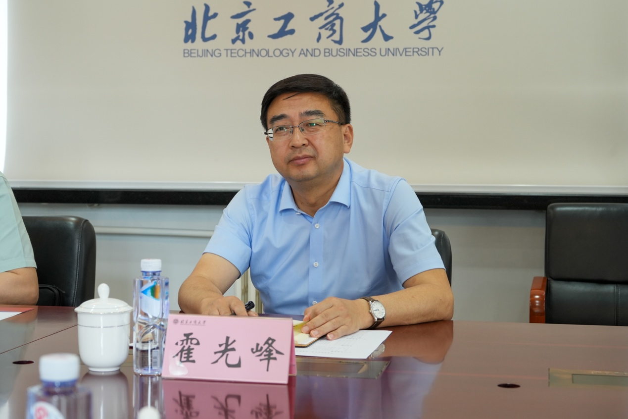 郭建华代表学校对霍光峰主任一行来访表示热烈欢迎,并对市台办长期以来对我校的支持表示衷心的感谢。他介绍了学校办学历程、学科建设、人才培养、科学研究的现状及未来发展方向。他表示学校党委始终把做好对台工作作为落实党中央精神、服务国家战略的重要抓手,未来,学校将继续按照中央和北京市关于对台工作的要求,创新对台教育交流合作模式,为台青学习生活、就业创业提供便利,不断提升对台工作水平,加大对台工作力度。
