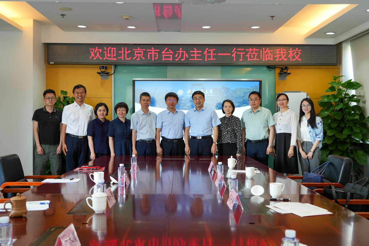 北京市台办研究室主任姚健、市台办交流交往一处处长佘平、市台办交流交往二处处长王丽;学校港澳台办公室主任贺冬萌、商学院执行院长何玉润、海峡发展研究院院长、马克思主义学院教授于强参加了此次会谈。