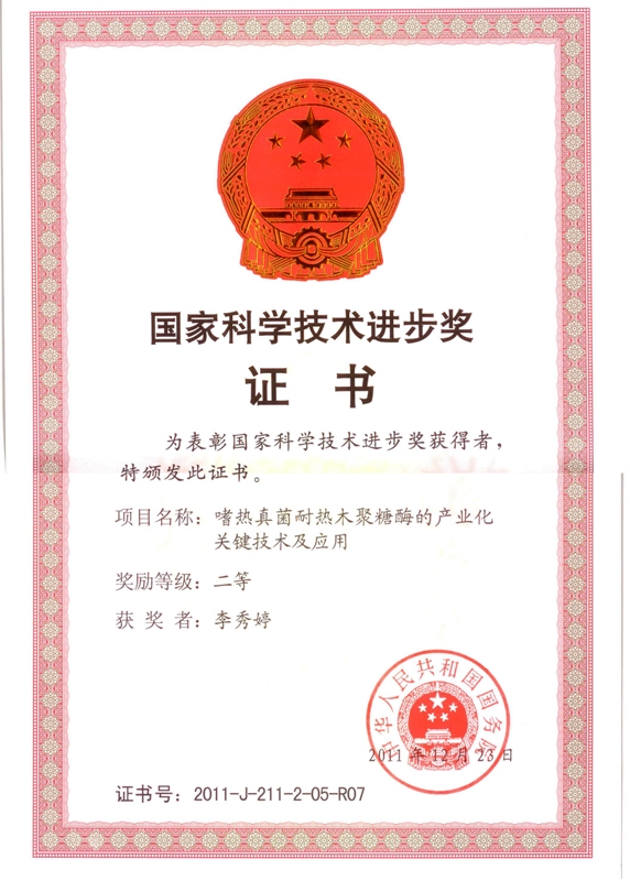近日,2011年度国家科学技术奖励大会隆重举行。我校食品学院教师李秀婷参与的“嗜热真菌耐热木聚糖酶的研究与应用”项目获得了2011年度国家科学技术进步奖二等奖。