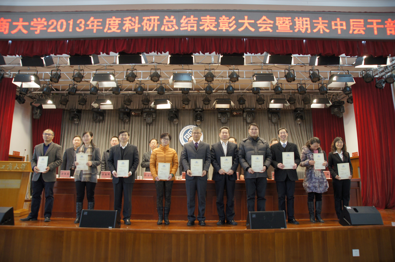 李朝鲜副校长宣读了2013年度获得省部级以上科研奖励、国家级项目立项名单和35岁以上人文社科类科研总分前十名、35岁以上理工类科研总分前十名、35岁以下人文社科类科研总分前十名、35岁以下理工类科研总分前十名名单。