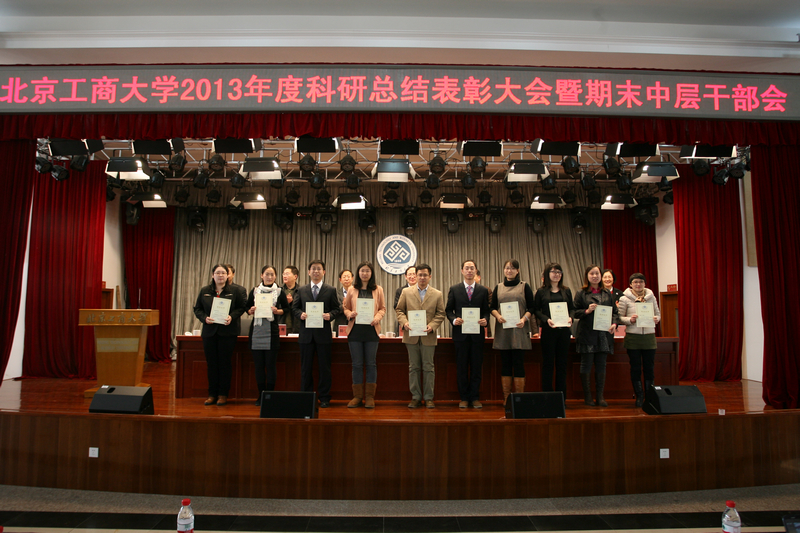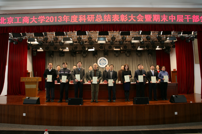 1月10日,学校2013年度科研总结表彰大会暨期末中层干部会在阜成路校区召开。校领导谭向勇、张德玉、孙宝国、谢志华、李朝鲜、张耘、方德英出席大会。学校中层干部、各院系主任、受表彰教师及科研秘书参加了会议。会议由副校长孙宝国主持。