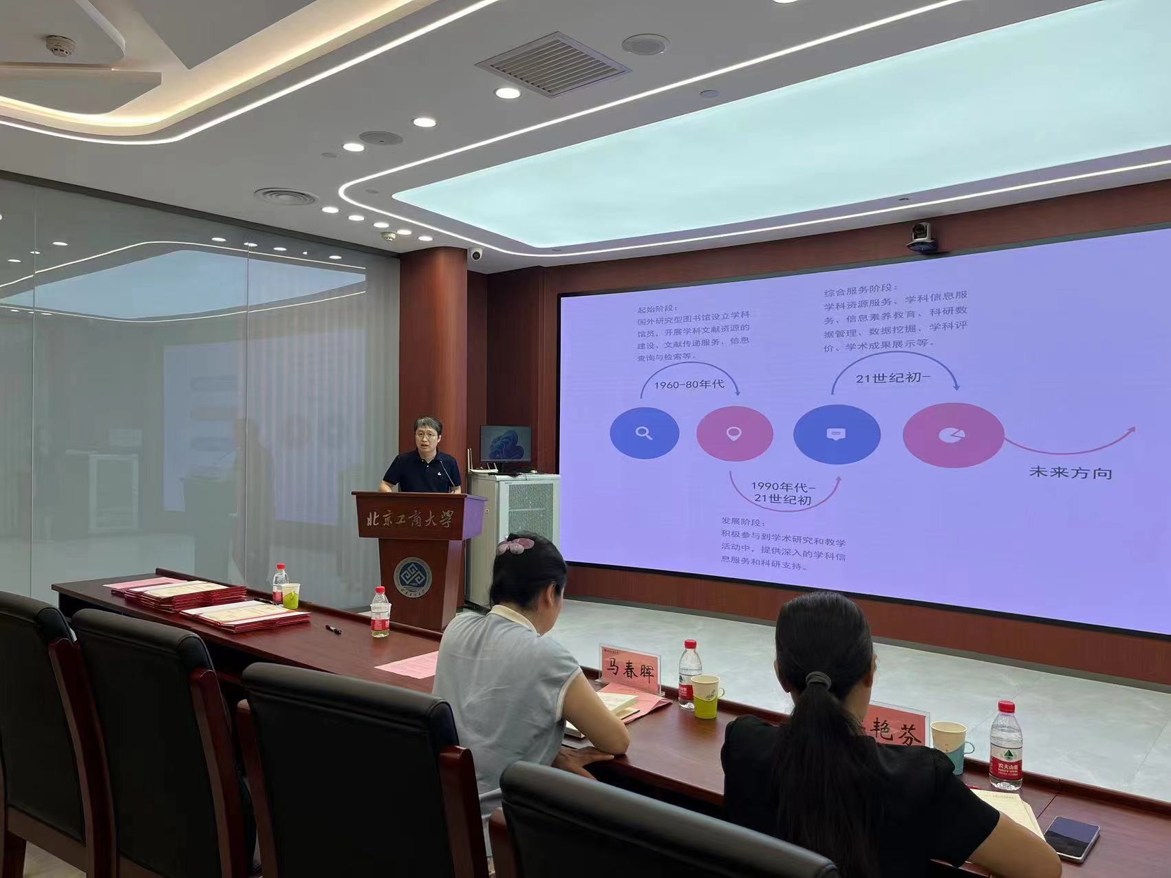 刘亮首先从学科服务发展历程与趋势、学科馆员团队架构及运作模式、学科服务内容、培训计划、近期工作要求等方面对学科服务与学科馆员工作进行了讲解。重点阐述和要求学科馆员要以用户需求为中心,以现代信息技术、文献信息资源为依托,以多元交互方式融入用户教学和科研场景中为其提供个性化、知识化、系统化、专业化的学科信息和知识服务。
