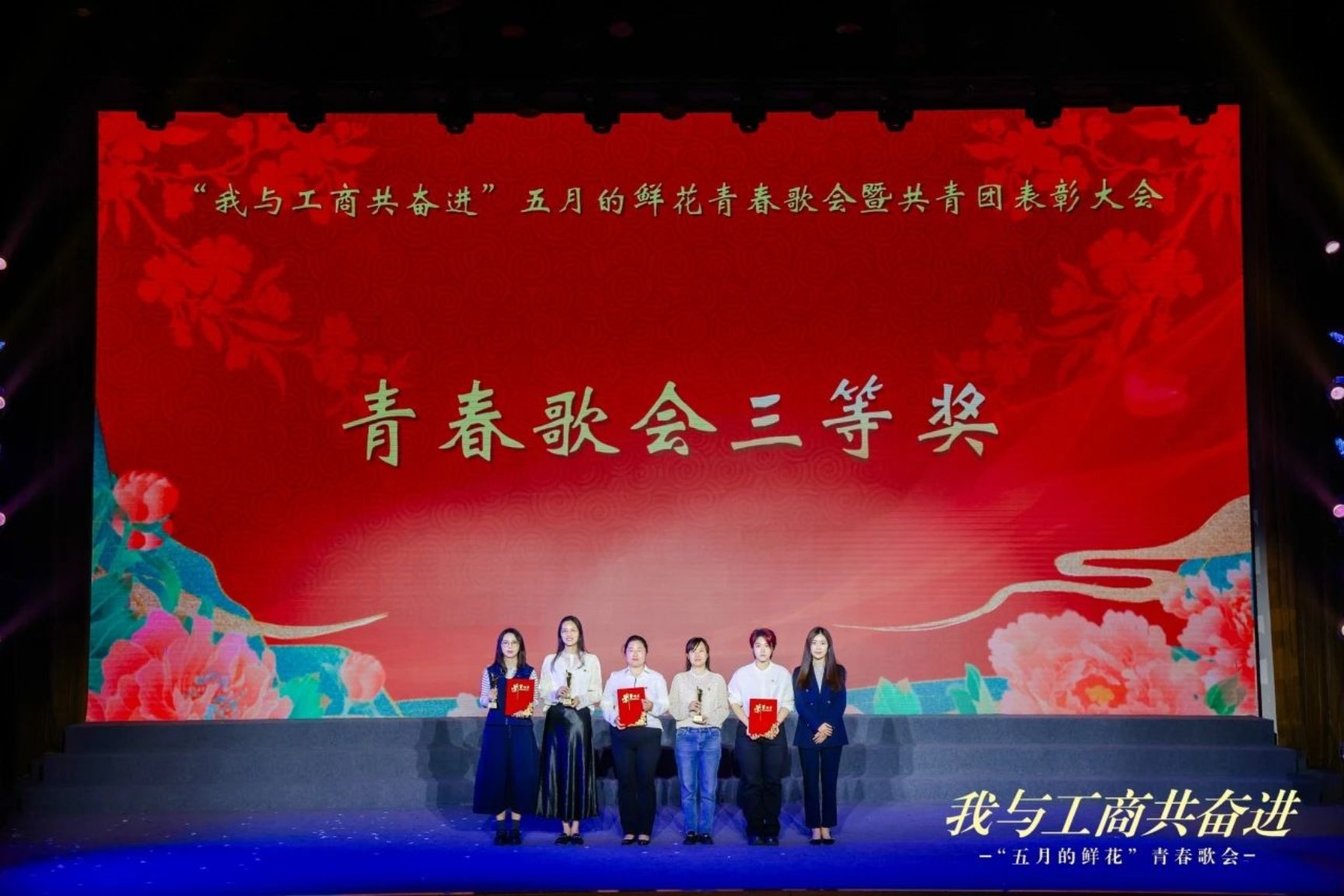随后举行共青团表彰及青春歌会颁奖环节。经过各级团组织推荐,学校评选出2024年度学校“先锋杯”五四红旗团委5个、“先锋杯”五四红旗团支部13个、“先锋杯”优秀共青团干部82名和“先锋杯”优秀共青团员137名。