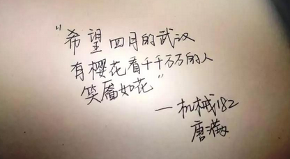 风雨压不垮,苦难中开花。等到春暖花开冰雪融化,再去武汉看樱花。武汉加油!中国加油!(信管181王瑞东)