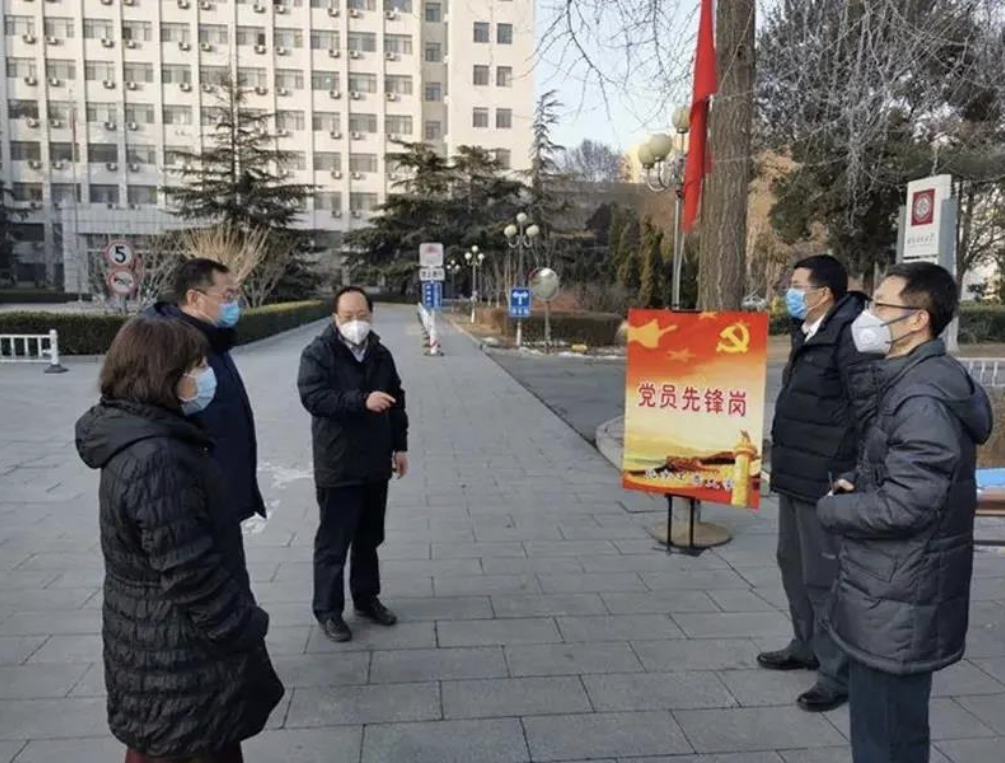 学校办公室、党委组织部(统战部)的党员中层干部和工作人员在学校阜成路校区的西区南门、东区南门开始了工作,出入登记、检查证件、测量体温……有序开展疫情防控工作。