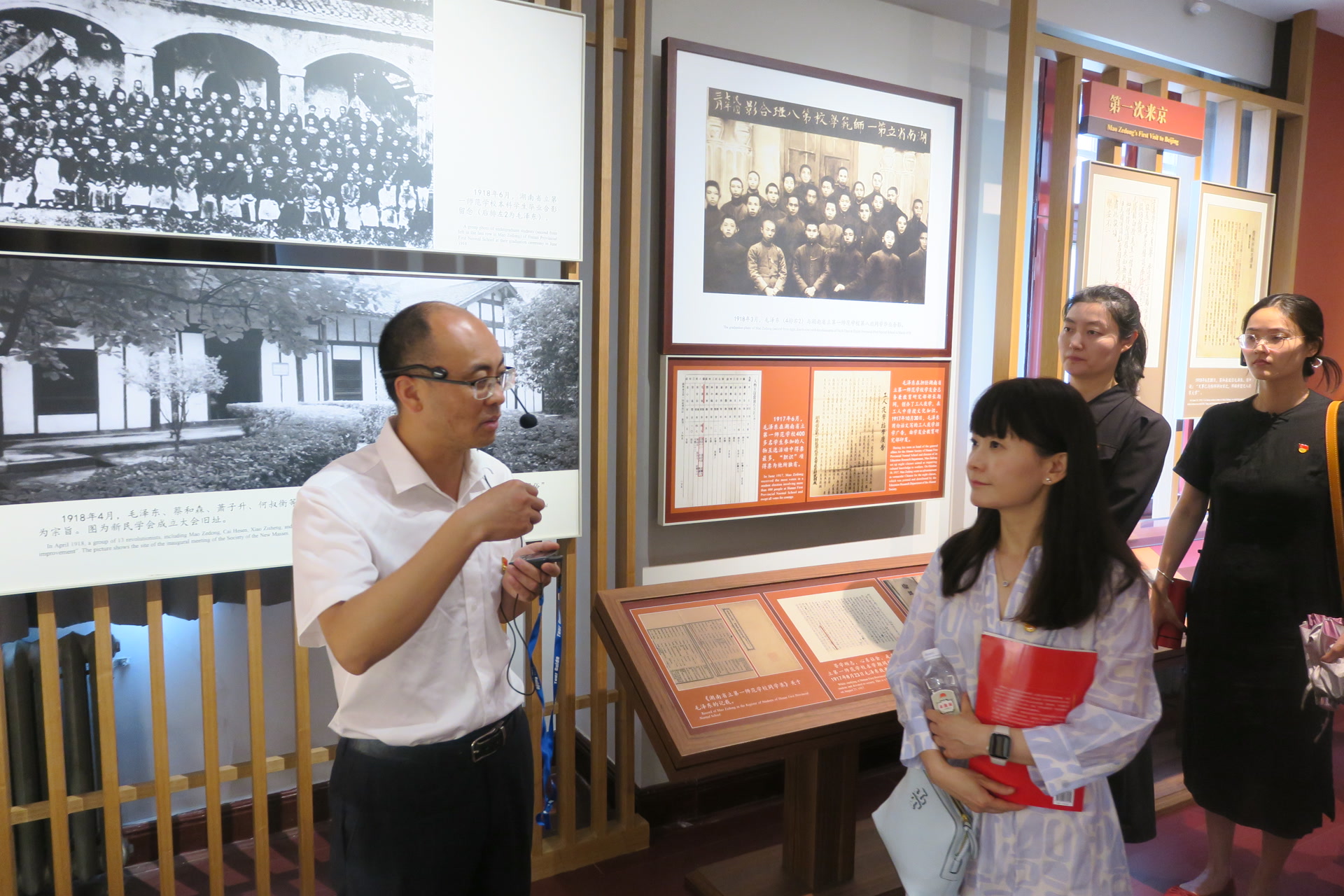在北大红楼,中国共产党早期北京革命活动纪念馆馆长杨家毅作为研学导师,为师生们亲自讲解,分享青年毛泽东在北大红楼、北大二院、杨昌济故居、三眼井胡同、陶然亭慈悲庵、长辛店等红色旧址开展革命活动的经历。师生一行坐在毛泽东、邓中夏等先驱者们曾经学习研讨的座位上,仿佛穿越时空,开启了一场穿越时空的对话。
