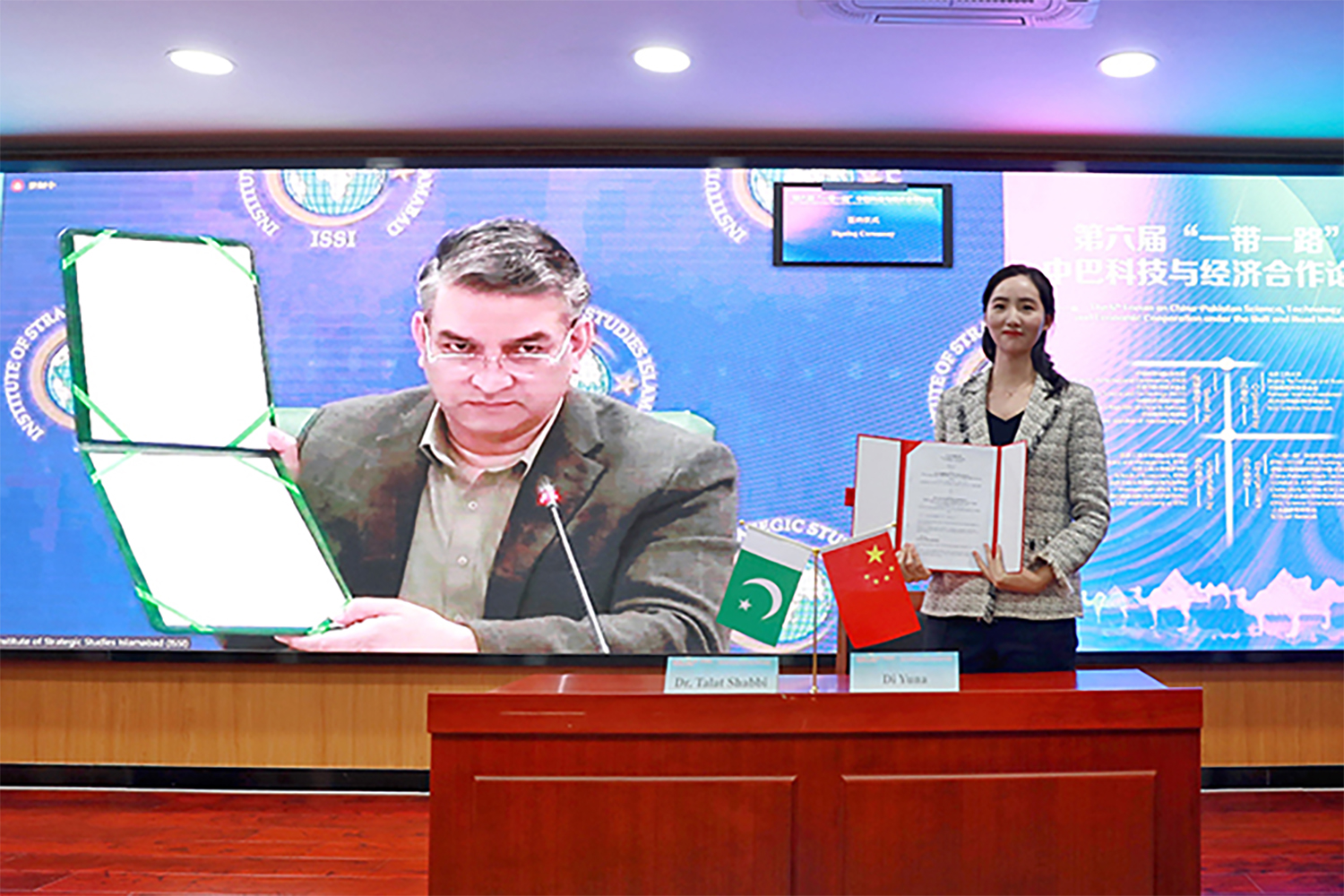 随后举行了obao欧宝娱乐 巴基斯坦科技与经济研究中心与伊斯兰堡战略研究所中国-巴基斯坦研究中心学术合作备忘录签约仪式。双方将基于该协议发展长期合作关系,在制度化的框架内促进学术和研究领域的交流。