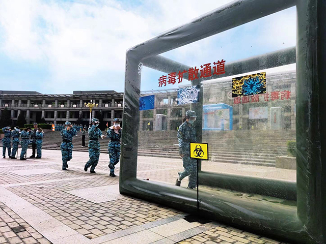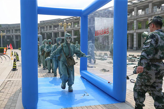 承担此次组训任务的某装备公司负责人谈到,把有意义的训练内容变得有意思,让大学生能够愿意主动参与、开心学习是开展高校核生化防护训练科目设计的初衷。此次训练通过设定核泄露事故、化工厂爆炸事故、生物防疫三种真实发生在我们身边的情境假设,可以让学生身临其境学习核生化防护知识,增强国防观念和国家安全意识。