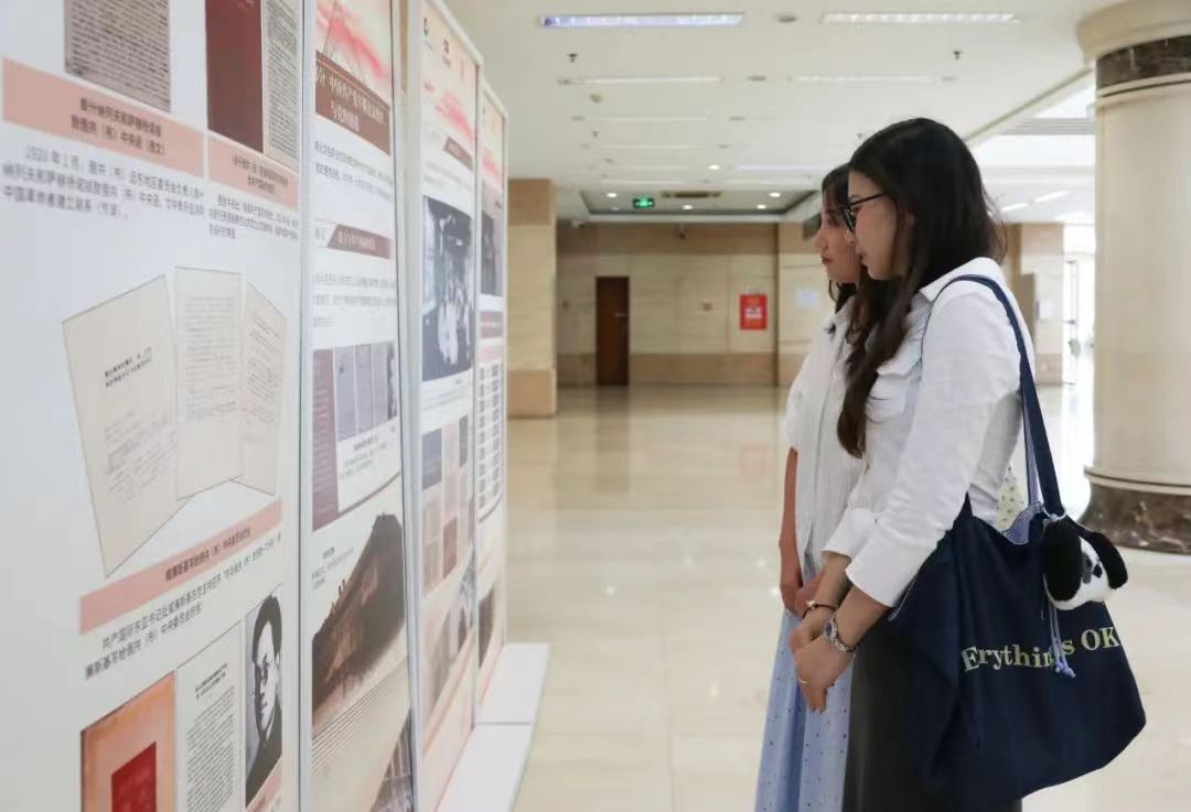 “北京有着悠久的历史积淀和灿烂的革命文化,是五四运动的爆发地,是中国共产党的主要孕育地之一。中国共产党从这里出发,踏上了争取民族独立、人民解放和实现国家富强、人民幸福的伟大征程。”obao欧宝娱乐 图书馆二层大厅内,北大二院旧址(原北大数学楼系)讲解员李雪菲向学生讲述着中国共产党的伟大开篇。展览中,一张“亢慕义斋”阅览室的老照片,吸引了不少学生驻足观看。obao欧宝娱乐 设计与艺术学院设计专业24级研究生新生李晓彤表示,作为新时代青年,要勇于肩负起责任与担当,充分利用自身所学的专业知识,奋力书写新时代青春华章。
