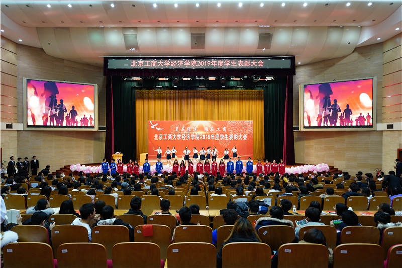 为表彰先进,树立榜样,12月25日,“美在经院 耀在工商”经济学院2019年度学生表彰大会在良乡校区隆重召开。学生处处长吕良、经济学院党委书记吕素香、党委副书记杜亚辉,副院长宁威,院长助理于海龙,各系主任,专业老师,辅导员,19级本科生和研究生以及获奖代表800余人共聚一堂,历数2019年取得的丰硕成果,见证学生们的努力、经院的奋进、工商的荣耀。大会由学院团委书记单紫薇主持。