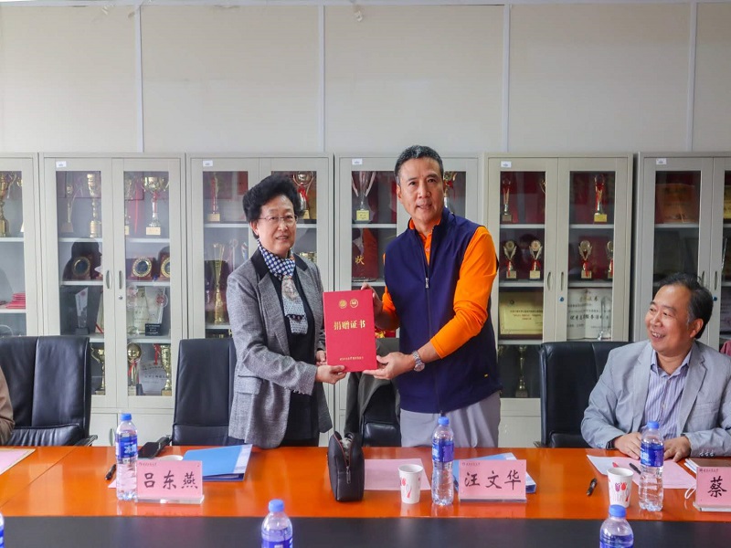 首先,学校教育基金会秘书长吕东燕老师与校友汪文华先生签订捐赠协议书,并代表学校对汪文华校友的慷慨资助表示感谢。之后,由校友汪文华先生为学生颁发助学金证书。
