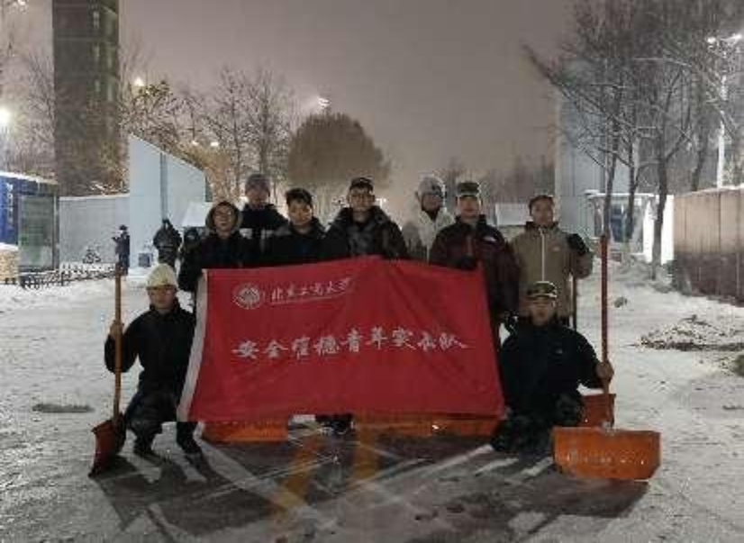 在学院的带领下,学生志愿者也积极行动起来,开展扫雪除冰劳动实践。学生们拿起除雪工具,推、铲、扬、堆,各种方法齐上阵,有条不紊地将学院楼宇门口和道路上积雪路面逐一清理干净,让青春闪耀在冰雪世界,将爱与温暖传递在校园的每个角落。