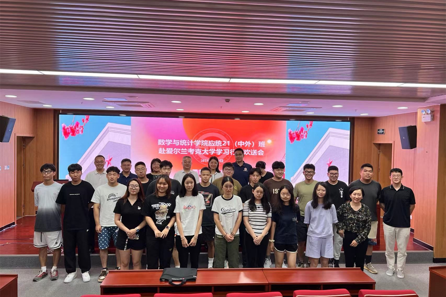 数学与统计学院中外合作办学(风险与精算)专业赴爱尔兰学习行前欢送会于9月3日举行。教务处处长曹显兵、欧宝体育平台登录入口 与合作处副处长马雪娇、数学与统计学院党委书记周艳杰、院长刘艳楠、党委副书记徐伟钦、副院长罗玉波出席会议,辅导员及应统21(中外)班出国学生和家长参会,会议由数学与统计学院副院长黄雪源主持。
