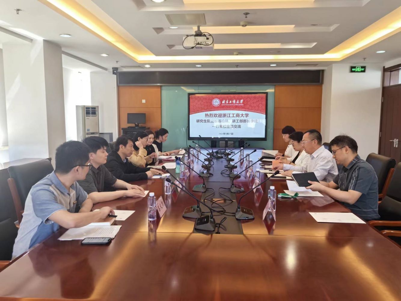 李琼介绍了浙江工商大学学生规模以及研究生招生等相关情况,希望在党建思政、学生日常管理等方面加强交流,促进合作共赢。张倩介绍了我校学科建设的基本情况、学科建设成效、ESI学科排名情况、交叉学科建设举措以及研究生党建与思政相关工作。申现宝介绍了落实研究生导师责任制、工商融合课程改革项目、产学研联合培养研究生示范基地建设等我校创新型人才培养的相关措施。