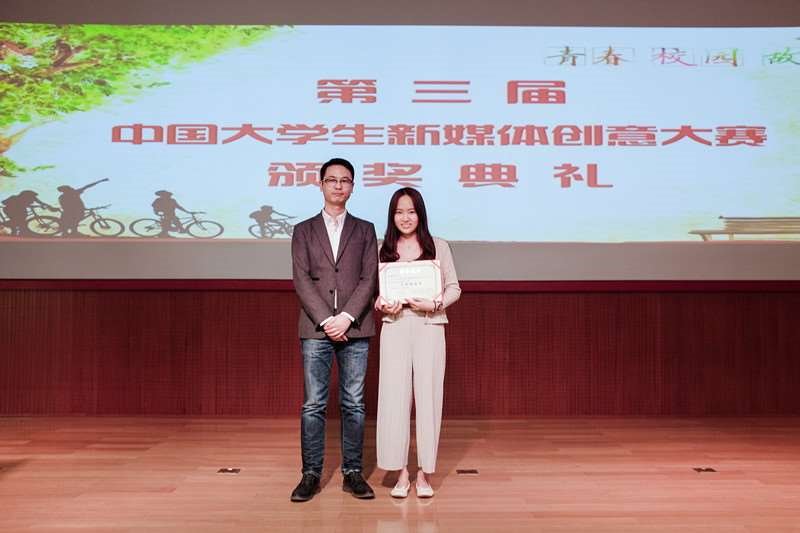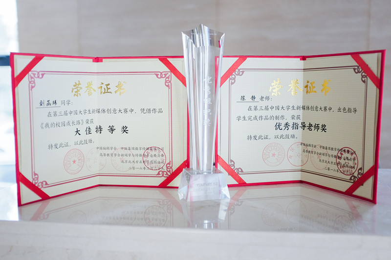 3月29日,第三届中国大学生新媒体创意大赛颁奖盛典在京举行。我校艺术与传媒学院新闻系13级学生刘函玮荣获大赛特等奖,新闻系教师陈静荣获优秀指导教师奖,我校获优秀组织奖。我校代表队由艺术与传媒学院副院长王擎教授带队参加颁奖典礼。