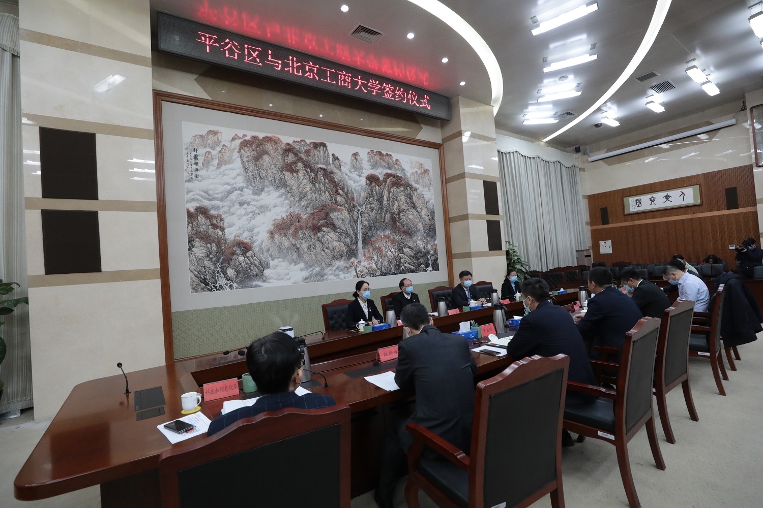 平谷区委常委、常务副区长于吉顺和学校党委常委、副校长左敏分别代表双方签署了战略合作协议。