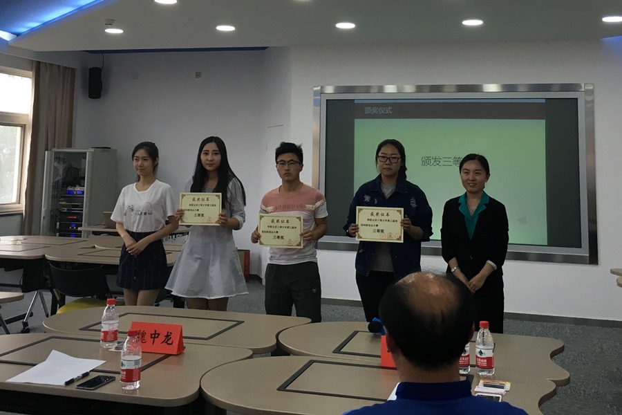 第三届创新创业校园赛,由文科实践中心曹刚老师主持。通过初赛入围的9支团队分别从项目新颖性、技术可实现性、商业可行性等方面重点阐述了项目的创意来源、管理团队配置、商业模式、运营管理、资本构成、财务前景等内容。来自北京经济管理职业学院副院长魏中龙、学校教务处副处长张伟、校团委书记王海伟、新道科技股份有限公司副总裁宋健、星创文化传播有限公司CEO周玉琢等五位评委,结合自己的工作经历和亲身实践,对项目路演的团队提出了意见和建议,并进行了现场打分。经过激烈角逐,产生了一等奖一名、二等奖两名、三等奖三名。