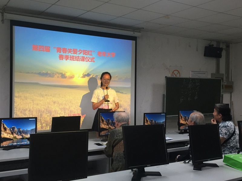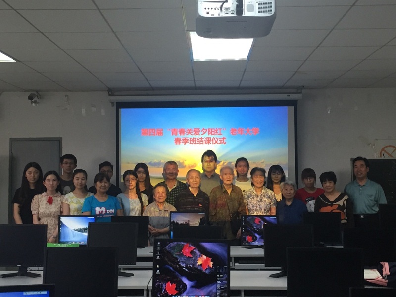 6月1日,2016年春季学期“青春关爱夕阳红”离退休教职工计算机培训班(老年大学2016年春季班)结课仪式在阜成路校区召开。学校离退休党委书记庞春生、计信学院党委副书记张凯伟、离退休教师以及学生讲师、助教们参加了结课仪式。