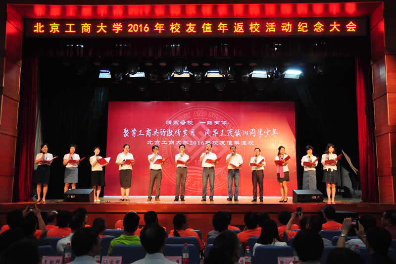 上午10时许,值年校友返校活动纪念大会在东区礼堂隆重举行。参加纪念大会的学校领导有谭向勇、孙宝国、谢志华、李朝鲜、张耘、邱晓平、董竹娟。校友黄子龙(82商经)、陈蓓(化82)主持纪念大会。