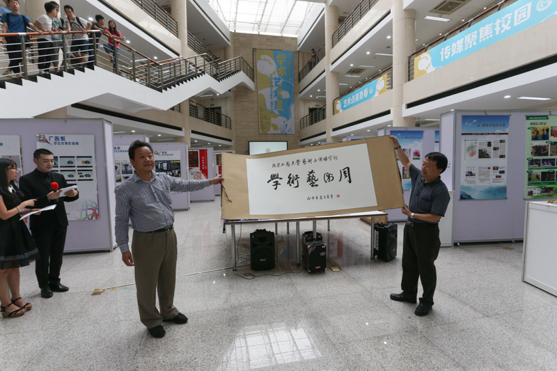 艺术点亮青春,传媒聚焦校园,6月14日,艺术与传媒学院2016学术艺术周在良乡校区正式拉开帷幕。副校长郑文红出席开幕式并讲话。艺术与传媒学院院长罗子明、分党委书记林刚、副院长郑子云、分党委副书记刘晶及各系主任、师生代表参加开幕式。房山区昊天学校校长李秋红、我校党委宣传部部长张春萍、图书馆馆长马春晖、党委宣传部副部长褚才宽等应邀出席活动。