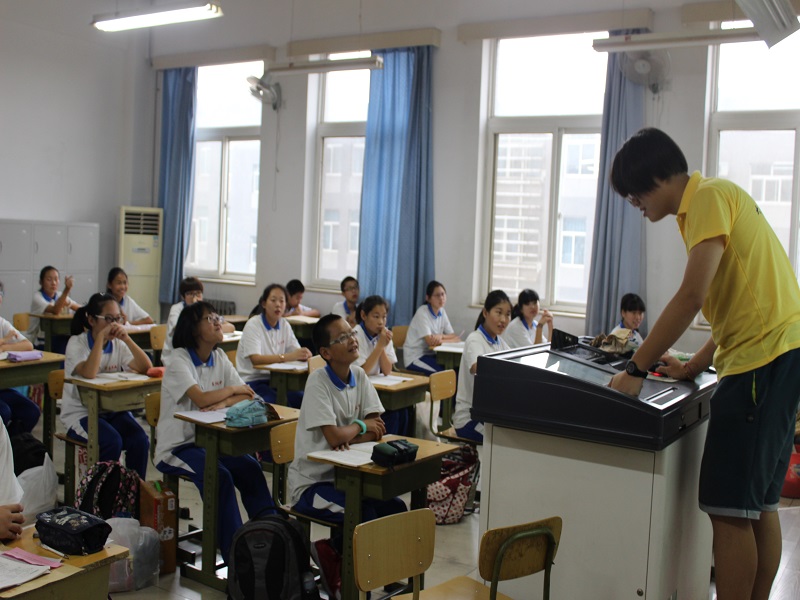 下午2点,在良乡五中阶梯教室举行了夏令营的开营仪式。仪式上,良乡五中德育副校长许校长对实践分团表示了诚挚的欢迎、感谢和支持,并指出“十村百乡千人行”活动不仅能够让学生们感受社会发展、人文发展,也能帮助他们对未来有一定的规划。许校长对实践团的学生提出了带领良乡五中同学脚踏实地,注重实践,开阔眼界的希望,同时也对同学们提出了要遵守纪律、注意安全的要求。