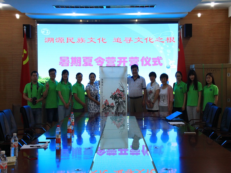 附中副校长王大安对实践团成员的到来表示欢迎,他表示,自2015年12月23日以来,北工商在教师培训、学制建设、社团培训对我校进行了大力的帮助与指导。期盼本次暑期活动成功举办。实践团带队老师2014级辅导员程远代表学院发言,她要求所有成员以饱满的精神状态认真对待此次活动,以更严谨的态度对待支教课程。实践团成员刘賡昱代表全体成员发言将按照实践团要求认真完成支教任务。附属中学的学生代表吴天宇作为参加学生发言称,会与支教的哥哥姐姐们积极配合,更好地完成本次支教活动,过好有意义的暑期夏令营。云杰副书记希望工商大学的学生和附属中学的学子通过本次夏令营活动建立深厚的友谊,在艺术与传媒学院的支教小老师们和附中学生的共同努力下,做出特色,打造精品项目。最后进行了对接仪式,由学院党委副书记刘晶将我院学子的《珊瑚》画作赠与附属中学。