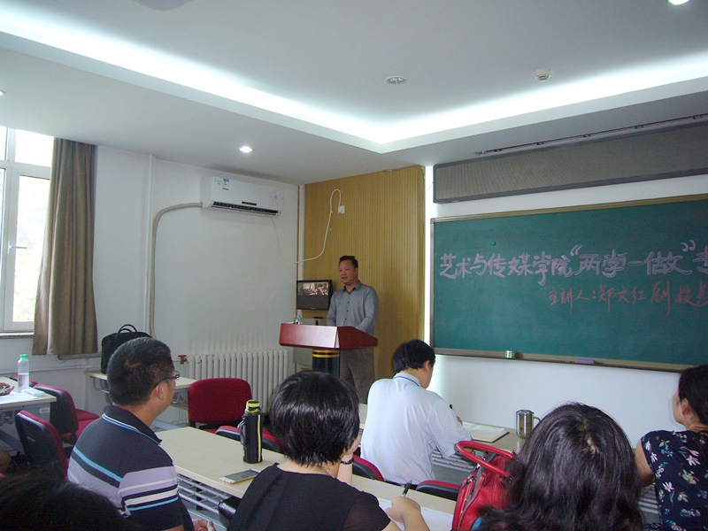 在一小时的党课讲授中,郑副校长还有针对性地为艺传学院的工作提出了相关建议,他指出,学院党委要善于运用马克思主义辩证法、矛盾论思想,树立起全局观,在对立统一中开展好各项工作;要认真抓好党的建设,在思想建设、组织建设和作风建设等方面严字当头,真正将精细化管理落到实处;要明确人的主体地位,要以学生为本,做到文化育人、环境育人;要抓住北京“设计之都”的机遇,适应信息社会一流本科教学的要求,多听取一线教师的意见和建议,进一步精简课程,优化培养方案;制定并落实好二级学院“十三五”规划,统筹资源,不断提升教育、教学质量和教师国际化水平,在稳定现有本科生和研究生规模的基础上,多渠道开展国际合作办学,招收外国留学生。