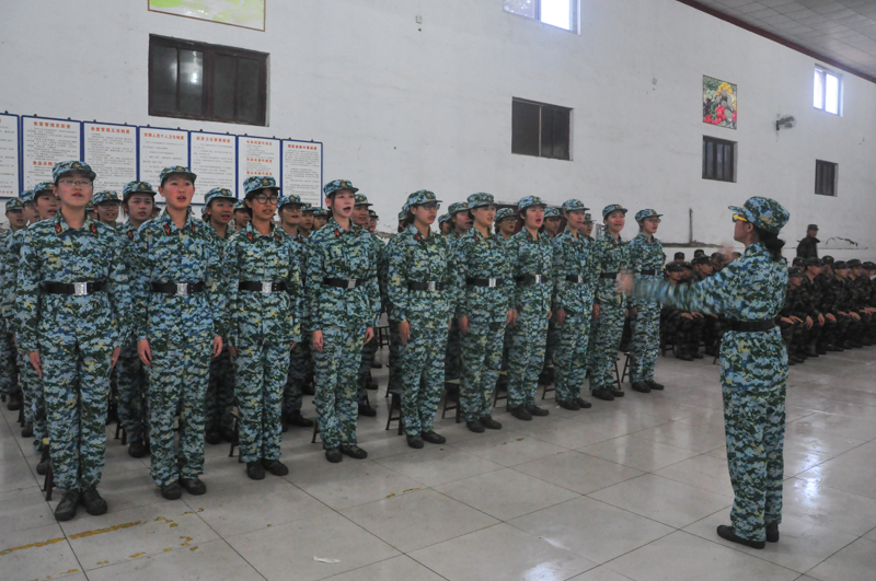 19号和20号连续两天暴雨,教官们紧急启动预备计划,根据天气情况安排了条令学习、内务整理、学军歌等室内活动和小范围的室内训练,并于20号下午举行会操比赛和歌咏比赛。