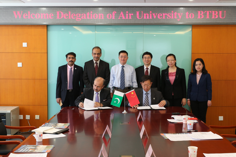 会谈后,孙宝国校长和法兹·埃米尔校长分别代表两校签署了obao欧宝娱乐 和巴基斯坦空军大学校际合作备忘录。