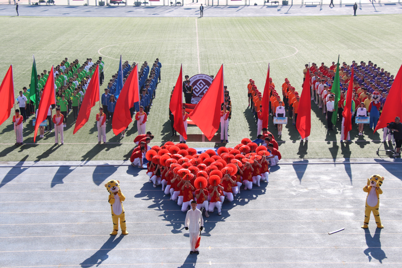 校长孙宝国致开幕词。他代表学校向本届运动会开幕表示热烈祝贺,向全体裁判员、教练员、运动员和参会师生表示问候。他谈到,运动会是对师生综合素质的大检阅,是对同学们勇于拼搏、追求卓越意志品质和身体素质的大检阅,本届运动会师生参与度高,相信运动员们一定会发挥出高水平,取得好成绩。孙校长表示,近年来学校开展的阳光体育运动、“五早一晚”等活动,引导同学们养成良好的习惯和取得优异成绩的同时,营造了努力学习、积极向上的校园文化氛围,效果明显。孙校长回顾了2016年学校在体育工作方面取得的可喜成绩,希望同学们在校期间珍惜时光,努力完成学业,练就强健体魄,希望通过本次运动会进一步推动学校体育活动的蓬勃开展,促进学校各项事业健康发展。