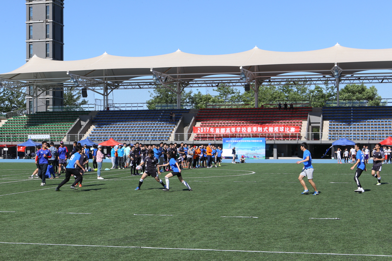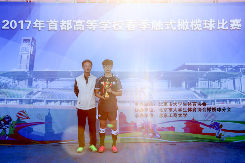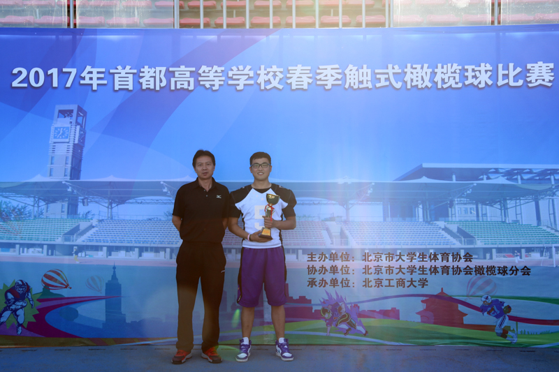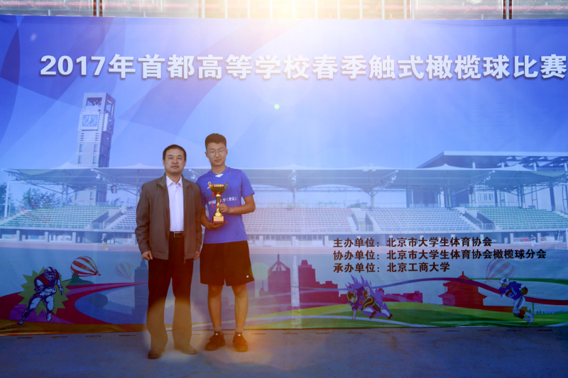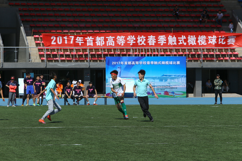 5月13日,由北京市大学生体育协会主办、橄榄球分会协办,我校承办的2017年首都高等学校触式橄榄球比赛在良乡校区柏林蓝操场举行。此次比赛共有12支队伍参加,每支球队由14人组成,上场男队员4名,女队员2名。我校派出1支队伍参加此次橄榄球比赛,最终荣获了杯级亚军的好成绩。