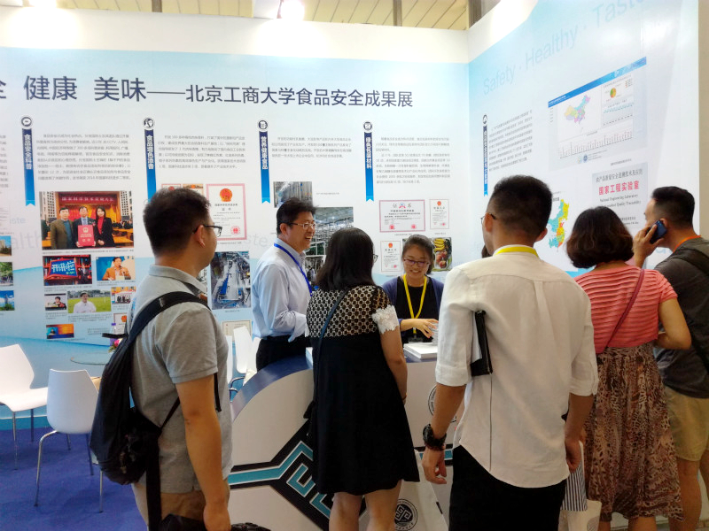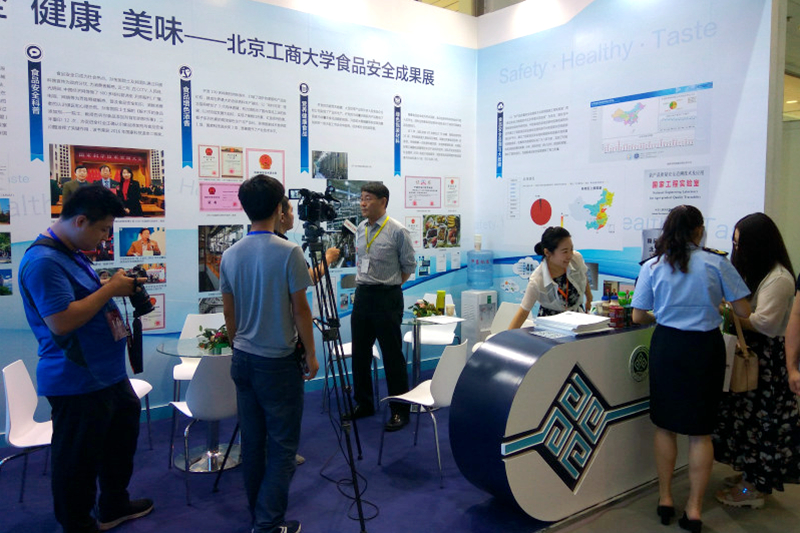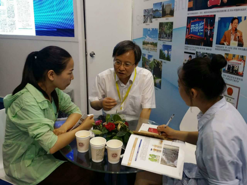 本次展览学校以“安全”“健康”“美味”为主题,重点从“学校简介”“食品安全科普”“食品增色添香”“营养健康食品”“绿色包装材料”“食品安全追溯与大数据”六方面对学校在食品技术及食品安全的科研成果进行了展示。展览采取文图与视频结合、展板和实物相结合的方式进行宣传,并通过观众品尝学校开发的安全食品体验食品安全的重要性。开幕式当天,计算机与信息工程学院左敏教授、食品学院郑福平教授、宣传部部长张春萍、科技处副处长康智勇现场解答了观众对食品安全技术、食品安全大数据、学校发展和科学研究等方面的问题,受到广大观众好评。展览期间,食品学院杨贞耐教授、刘新旗教授,计算机与信息工程学院刘翠玲教授,材料与机械工程学院周迎鑫老师等接受了中国经济网、中国食品安全报等媒体的采访。