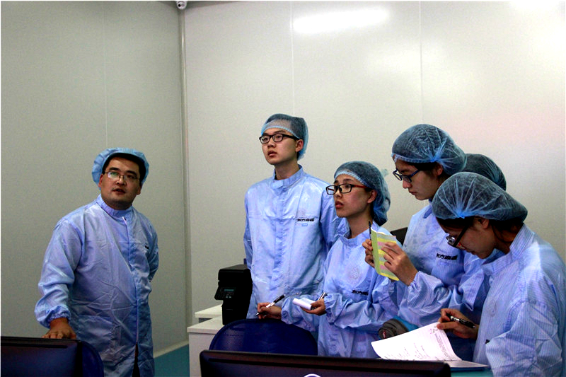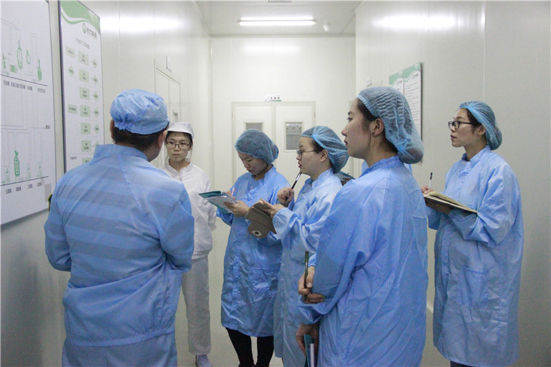 在北京东方淼森公司,企业相关负责人分别从生产中心整体介绍、植物提取基本方法和生产工艺流程、植物提取液工业化转化及生产方式、植物提取液生产质量管理及控制过程、生产设备结构原理及实践方式几个方面向同学们做了详细讲解。通过负责人的讲解,同学们从工业生产方面重新认识了植物原料提取的基本原理,并且从该公司“做有思想的植物原料”这一核心理念受到启发,立志灵活学习,展现学科特色。随后,实践团分成三组分别参观了原料库房、生产车间和质检中心。在参观过程中,每一位负责人都严谨负责,耐心讲解,让同学们近距离接触了植物原料的提取、脱色、过滤、浓缩、保存、质量检验等流程,对课本知识在实践中的应用有了深刻的理解。同时,负责人细致讲解了生产过程中的三废处理问题,同学们都结合专业知识和环保主题进行了积极提问交流。