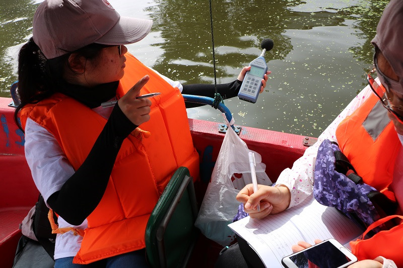 食品学院实践团16名团员在环境科学与工程系实验室主任董黎明老师和食品学院团总支书记刘晶老师的带领下,怀着饱满的热情,先到白洋淀北淀地区的12个国控和省控监测点对生态、水质、大气、噪声进行数据测量和采样。在强烈的阳光下,小船停停走走,实践团员们每到一处便认真的测量数据、采取样本,这让大家对白洋淀有了更为深入的认识,逐渐将课堂所学知识应用到实践中。