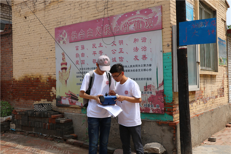 在河北省安新县端村镇边村,实践团进行家庭生态审核问卷调查及村庄内部大气、噪音情况监测。调研期间,各小组成员顶着烈日奔波于家家户户,用亲切近人的言语针对不同部分进行详细询问。通过调研了解到,边村家庭废物的不恰当处理为该村环境问题主要影响因素,家庭用水情况及能源应用情况良好,大部分村民环境保护意识不强。在了解环境的同时,各小组成员同时也关注调查家庭生活条件情况、人口情况等,从而全方面考虑影响该村可持续发展的相关因素。为监测边村各地区的PM2.5和环境噪声,实践团架设好实验仪器,在村委会、田边和马路旁等地方,进行多次取样测量,让实验数据更能反映问题。通过实验数据的分析比对,实践团成员发现边村地区的空气污染存在超标问题。