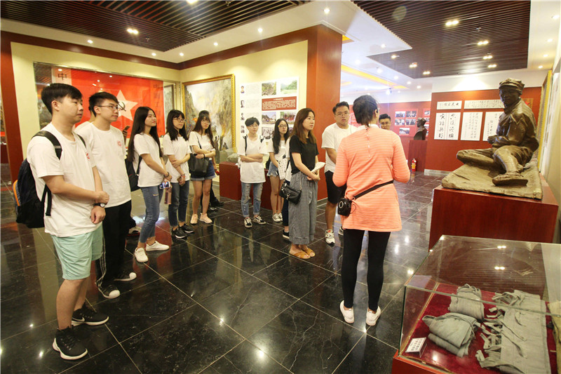 7月9日,实践团成员前往位于灌阳县的新圩阻击战陈列馆,重温长征历史,瞻仰革命先烈。讲解员细致地为实践团成员讲解了新圩阻击战的历史背景和惨烈战况。陈树湘师长被俘后,宁死不屈,断肠取义,以及祖孙三代保红旗的感人故事让人印象深刻。实践团学生杨文激动地说:“从北京到灌阳,从现在到过去,改变的是沿途的风景,而不变的是历史的馈赠。重温这段历史特别是陈树湘师长断肠取义的故事,不仅体会到革命烈士对革命事业无比的忠诚,和对人民至上、信仰天高的长征精神的切身实践,还让那颗拳拳的报国之心跳动的更加剧烈。”其他团员们也纷纷表示,要把红军精神贯穿到日常学习生活中,让红军精神代代相传,发扬艰苦奋斗精神,勇于创新,乐于奉献,发挥共产党员先锋模范作用,不忘初心,在新长征路上建功立业。