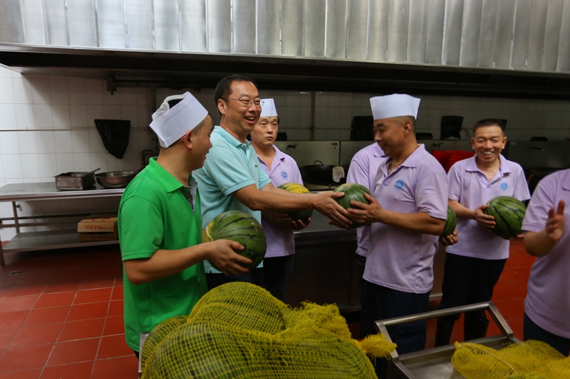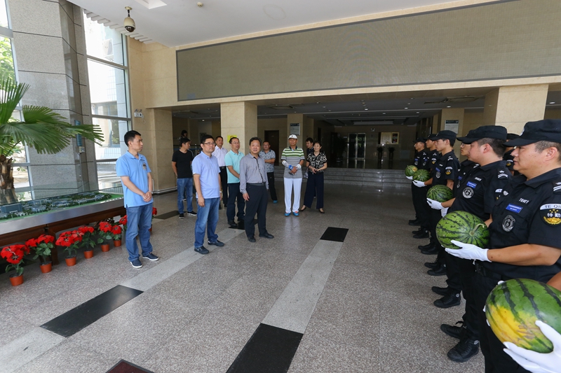 郑文红副校长代表学校工会感谢不同岗位的人员为保障校园各项基础工作运行做出的贡献,叮嘱大家务必在做好保障工作的同时,做好防暑降温工作。校领导每到一处,都仔细询问大家的工作情况,再三叮嘱大家注意安全,劳逸结合,同时要求相关部门负责人在确保工作进展的前提下,多关心一线职工的生活,了解职工实际困难,注意暑期出行安全。