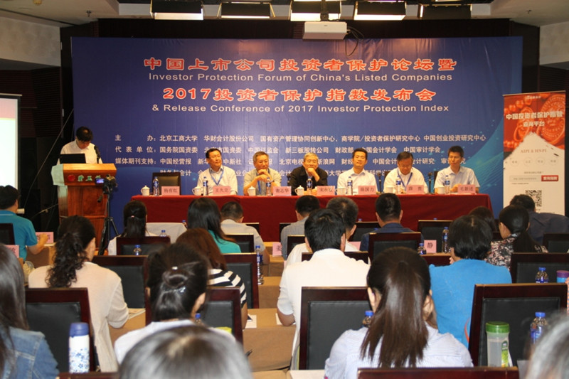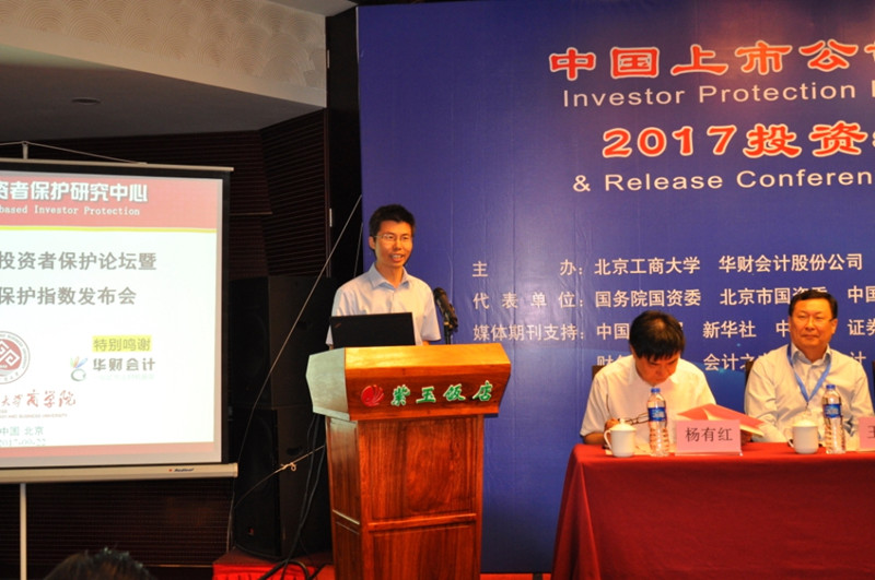 9月22日,我校商学院召开中国上市公司投资者保护论坛暨2017投资者保护指数发布会,连续第八次发布中国上市公司投资者保护指数,同时第二次发布新三板投资者保护指数。我校副校长谢志华,财政部会计司、企业司原司长刘玉廷,国家发改委司长宋承敏,中国保险资产管理业协会副秘书长陈国力出席发布会并做主题演讲。监管部门、投资机构、上市公司等相关单位,财经、新华社、中新社等在京媒体,会计研究等专业期刊,以及在京高校和科研机构的代表共140余人参加了发布会。发布会由商学院教授杨有红主持,商学院党委书记毛新述教授出席发布会并致辞。