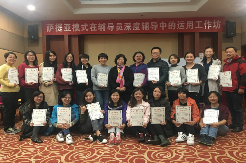 10月22日,由学生心理素质教育中心策划组织的“萨提亚模式在辅导员深度辅导中的运用工作坊”圆满落幕。此次培训邀请了中国心理学会认定的国家首批注册心理咨询师、国际认证萨提亚模式治疗师及督导师蔺桂瑞教授,为我校学生工作系统的老师们开展了为期四天的系统培训。学生处处长吕素香做了培训动员,并与材机学院副书记杨秀萍、经济学院副书记杜亚辉、商学院副书记樊江涛、法学院书记文四英、艺传学院副书记刘晶、心理素质教育中心主任刘立新、各学院辅导员及心理中心教师等20余人一起参加了本次工作坊。