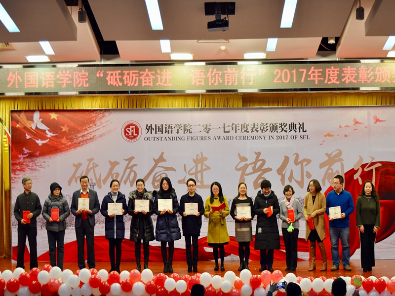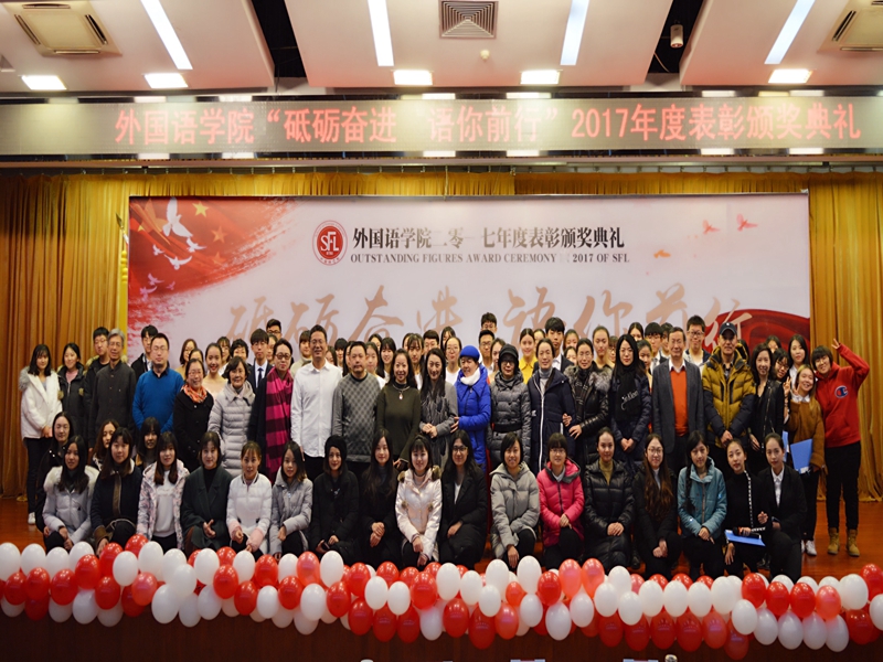 为表彰先进个人和集体,发挥榜样作用,12月13日,外国语学院举行2016-2017学年“砥砺奋进语你前行”表彰颁奖典礼。学院领导刘红艳、杨增成、苗天顺、任金晶与各系主任、辅导员、导师、班主任、本科生及研究生参加本次颁奖典礼。