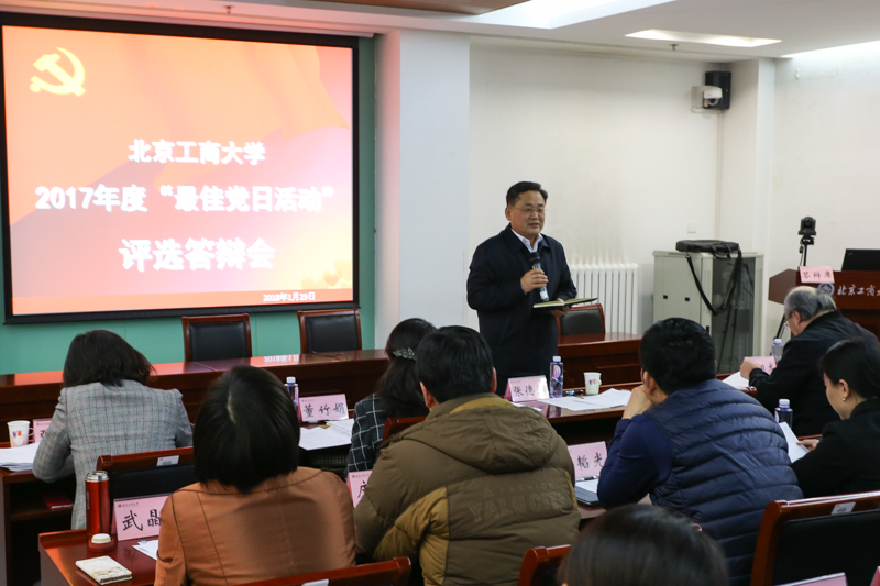 1月29日,学校2017年度“最佳党日活动”评选答辩会在阜成路校区举行。党委副书记张德玉、董竹娟出席会议。与会校领导、各基层单位党组织及党委职能部门部门负责人、本科生及研究生党员代表等27人担任现场答辩会评委,会议由党委组织部副部长张倩主持。