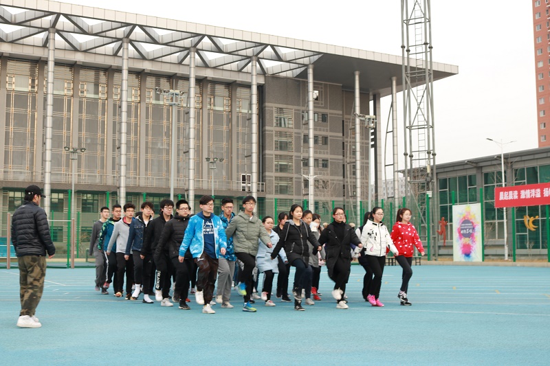 清晨6点40分,各学院学生在辅导员和学生干部的组织下,陆续开始了新学期第一次晨练活动,或跑步热身,或做操伸展筋骨,或组织跳绳、踢毽子、袋鼠跳等趣味活动。
