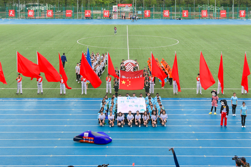 10个学院的运动员方队意气风发、精神抖擞地依次走过主席台,他们变换的造型、嘹亮的口号彰显着青春的律动,赢得了全场师生的掌声和欢呼。理学院运动员们面带自信的笑容、踏着豪迈的步伐在主席台前摆出“我爱BTBU”的图案,大声喊出他们对工商的爱和满怀的豪情;食品学院运动员们扇动衣衫和绸扇,摇曳生姿,黑白相生,刚柔并济,演绎了竞技体育与传统文化的汇聚;材机学子们青春的舞步和铿锵的步伐诠释了众志成城向着新时代新征程迈进的决心,自主研发的节能电动车承载着材机人的智慧与希望;计信学院方队的同学们舞动着金色的花球,不断变换的队形和动感十足的舞步洋溢着计信学子蓬勃的朝气。