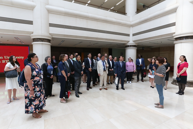 与合作处处长刘影的陪同下参观了良乡校区校史馆、图书馆和文科实践中心,并与相关部门的领导和老师进行了交流。