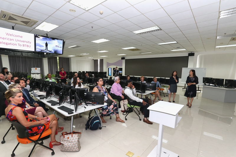美国宾夕法尼亚大学研究生教育学院高等教育管理执行主任黛安·伊丽莎白·艾农、研究生教育学院高等教育管理执行主管马修·艾伦·杰尼根,康奈尔大学招生副校长助理杰森·卡罗尔·洛克,硅谷卡内基梅隆大学就业服务部主任劳伦·玛丽沙·查尔,犹他大学战略部执行主任鲁奇·马瑟·沃森,美国阿尔马学院副校长马修·彼得·范登堡,伍斯特理工学院高级副校长克里斯汀·露丝·提琴诺,美国亚美尼亚大学评估与认证事务主任沙里斯坦·安娜·梅尔肯,巴克斯郡社区学院科技与创新事务副校长杰森·梅兰德,德雷克塞尔大学支持服务执行主管罗伯特·阿桑特,威尔康奈尔医学院学院运营主管埃尔茜·C·斯宾塞,雷曼学院教学服务项目主任奥尔西娅·安琪儿·福德,马里兰州社区学院协会政策分析主任布拉德利·达利安·菲利普斯,蒙哥马利郡社区学院市场与传播执行主任安吉拉·玛丽·波莱克,纽约大学斯特恩商学院学生事务与创新副院长阿施施·巴蒂亚,伊隆大学性别与LGBTQIA 中心执行主任马修·博世,哈弗福德学院副院长迈克尔·莫里斯·马丁内斯,罗森伯格验光学院眼部护理和健康主任助理安德鲁·莫里斯·亨利,圣约瑟夫大学Haub学位项目执行主任瓦娜·玛丽·米勒·泽瓦诺斯,罗斯柴尔德基金会首席运营官雷马·约瑟夫·沙基尔,联合郡学院研究评估及规划部执行主任伊丽莎白·安妮·科内尔,阿拉斯加大学费尔班克斯分校北方工程研究所商务办公室主任德里克·爱德华·米勒,斯克兰顿大学法律总顾问兼大学秘书罗伯特·贝拉明·法雷尔,惠普公司副主席米迦勒·约翰·施密德伦,欧洲麒麟精华集团董事总经理戴凯,我校后勤基建处处长吉涛、校史馆馆长杨巧明、图书馆副馆长李艳芬、文科实践中心主任郭馨梅参加了此次访问活动。