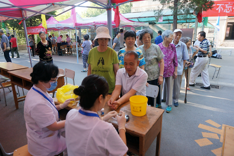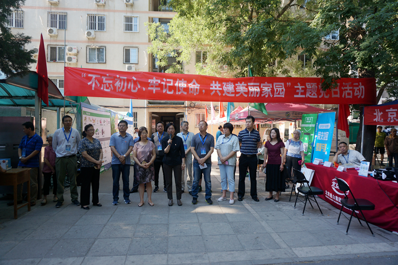 为纪念中国共产党成立97周年,进一步巩固“两学一做”学习教育成果,充分发挥党支部战斗堡垒作用和党员先锋模范作用,6月29日,后勤部门党总支联合学校社区居委会、304医院、甘家口社区医院、甘家口大厦、市热力集团、甘家口食药监所等多家单位,在阜成路西区家属区开展了以“不忘初心 牢记使命——共建美丽家园”为主题的党日活动。后勤部门党总支党员、入党积极分子、各科室骨干和相关单位100多人参与活动。