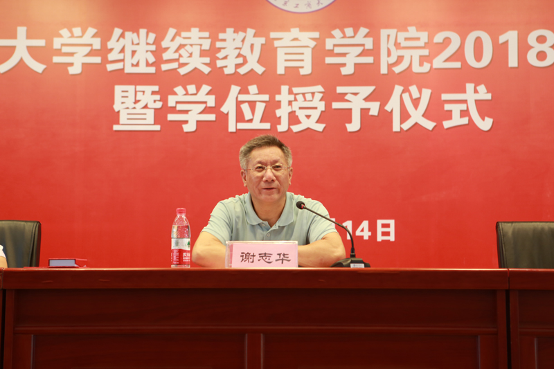 绚烂七月毕业季,学子们将满怀收获的喜悦,载着母校的祝愿,带着亲人的期望,向着新征程扬帆起航。7月14日上午,继续教育学院2018届毕业典礼暨学位授予仪式在阜成路校区举行。副校长谢志华出席毕业典礼,见证300余名毕业生顺利毕业的喜悦时刻。继续教育学院院长顾红、副院长卢灿宽以及继续教育学院全体教职员工、教师代表、班主任及部分家属代表参加毕业典礼。典礼由学院副院长卢灿宽主持。