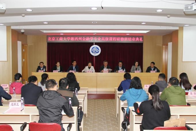 10月19日,由我校与湘西州政府合作主办,我校经济学院承办的2016年度湘西州金融学专业高级课程研修班在阜成路校区举行结业典礼。副校长谢志华和湘西州副州长徐虹出席结业典礼。湘西州委组织部副部长杜修林,我校研究生院院长杨德勇,经济学院院长徐丹丹、副院长罗玉波、教授代表葛红玲,湘西民族职业技术学院成教部副主任颜河玲以及研修班部分学员参加了结业典礼。结业典礼由经济学院党委书记张正平主持。