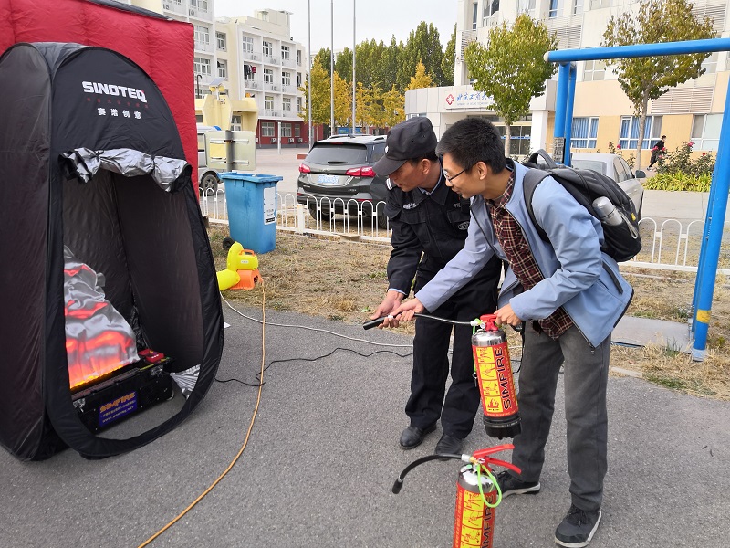 此次活动旨在全面实施“平安校园”建设提升工程,加强对“消防安全百日会战专项行动”的宣传教育,提高全校师生防火安全意识和火场逃生自救的能力,确保学校秋冬季防火安全。14时整,消防疏散演习正式开始,消防警报同时鸣响。模拟接到火灾报警后,微型消防站迅速到达火场实施灭火,参演学生从各组团学生宿舍快速疏散到集结区,完成了火灾逃生疏散,展示了学校在学生安全教育工作的良好成果。拱辰消防中队消防员为参演师生讲解灭火器使用方法,并现场演示了利用消防水带扑救火灾流程。保卫处在疏散集结地域内设置了“消防逃生体验帐篷”与“模拟灭火实训设备”,供学生实地体验疏散逃生和灭火器材使用。随后,参演师生现场进行了灭火演练实操。